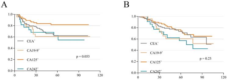 | Variables | CEA | CA125 | CA19-9 | CA242 | |||||||||||