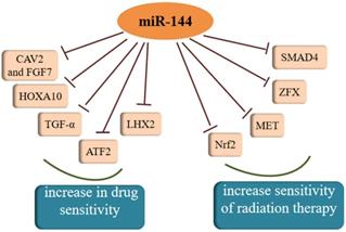 MiR-144 was confirmed to increase sensitivity of drug and radiation therapy, which could be a target for cancer treatment.